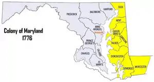 The 2nd Maryland Regiment origins were authorized on 14 January 1776 in the Maryland State Troops as seven independent companies. From 7 to 14 March 1776 the companies were organized from various counties from the eastern region of the colony of Maryland. From 6 July to 15 August 1776 the companies were assigned to the main Continental Army and officially adopted on 17 August 1776. In January 1777 the seven companies were organized as the 2nd Maryland Regiment with one additional company added. On 22 May 1777 the regiment was assigned to the 2nd Maryland Brigade in the main Continental Army. On 12 May 1779 the regiment was re-organized to nine companies. The 2nd Maryland Brigade was reassigned to the Southern Department on 5 April 1780. On 1 January 1781 the regiment was reassigned to the Maryland Brigade of the Southern Department. The regiment would see action during the New York Campaign, Battle of Trenton, Battle of Princeton, Battle of Brandywine, Battle of Germantown, Battle of Monmouth, Battle of Camden and the Battle of Guilford Court House. the regiment was furloughed 1 January 1783 at Charleston, South Carolina and disbanded on 15 November 1783.