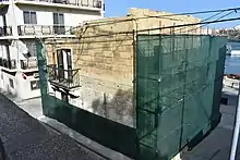 The building at 3, Triq ix-Xatt (Marina Street),[30][31] Marsaskala, was located between the front of scheduled Villa Apap Bologna with its adjoint chapel and the main promenade of the village.[32] It was built sometimes in the 19th century but its exact date and other details are unknown.[32] The Planning Authority was requested by the Local Council and others to make a study about the details of the building but these were not carried out.[32] It is established that the building appeared on site since the earliest and all photos know of the site.[33] The first photo taken of the area, showing the building, is in a nostalgic photograph of 1885.[34] It is generally described as of being vernacular architecture, meaning it may had no architect or general planning.[35] The latter implies that it was built for convenience to the owners for specific purpose close to the sea.[36] It is known to have been one of the few early sea-side houses.[37] It has been described as one of the oldest residential properties in Marsaskala.[32][38][39][40] It was entirely located within the Urban Conservation Area (UCA).[32] It originally had wooden apertures and a prominent balcony looking towards the sea.[41]