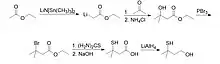 The compound can be produced through many methods. The most well-known reaction sequence begins with ethyl acetate, which is activated with lithium bis(trimethylsilyl)amide at the α-position and coupled with acetone to form ethyl 3-hydroxy-3-methylbutyrate. The 3-hydroxy-3-methylbutyrate is then brominated, treated with thiourea, and hydrolyzed to form 3-mercapto-3-methyl-butyric acid. The compound is then reduced with lithium aluminum hydride to form 3-mercapto-3-methylbutanol.[7]
