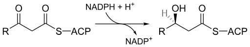 This enzyme belongs to the family of oxidoreductases, specifically those acting on the CH-OH group as hydride donor with NAD+ or NADP+ as hydride acceptor. The systematic name of this enzyme class is (3R)-3-hydroxyacyl-[acyl-carrier-protein]:NADP+ oxidoreductase. Other names in common use include beta-ketoacyl-[acyl-carrier protein](ACP) reductase, beta-ketoacyl acyl carrier protein (ACP) reductase, beta-ketoacyl reductase, beta-ketoacyl thioester reductase, beta-ketoacyl-ACP reductase, beta-ketoacyl-acyl carrier protein reductase, 3-ketoacyl acyl carrier protein reductase, 3-ketoacyl ACP reductase, NADPH-specific 3-oxoacyl-[acylcarrier protein]reductase, and 3-oxoacyl-[ACP]reductase. This enzyme participates in fatty acid biosynthesis and polyunsaturated fatty acid biosynthesis.