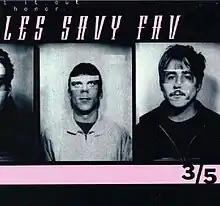3/5 is the first album by Les Savy Fav. It was released in 1997 by Self-Starter Foundation.[3] The LP release came in a pack of shower caps[4] and is fairly difficult to find, sometimes fetching high prices on eBay. Coincidentally, only three-fifths of the line-up on this album, the band's first, remain in the present-day line-up, as drummer Patrick Mahoney was replaced by Harrison Haynes before the group's second album, The Cat and the Cobra, and guitarist Gibb Slife left before the recording of the Emor: Rome Upside Down EP.