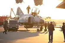 One of the aircraft operated by the squadron (17-8440) was the last of the 5,195 F-4 Phantoms to be produced. It was manufactured by Mitsubishi Heavy Industries on May 21, 1981.[7] "The Final Phantom" originally served with the 306th Tactical Fighter Squadron.[4] In early December 2020, 17-8440 was withdrawn from use and flown to the Air Park Museum at Hamamatsu Air Base for preservation.[6]