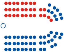 The 1951 election saw the governing National Party re-elected with a twenty-seat margin, a substantial improvement on the twelve-seat margin it previously held. National won fifty seats compared with the Labour Party's thirty.[5] The popular vote was closer, however, with National winning 54% to Labour's 46%.[6] No seats were won by minor party candidates or by independents.[7] This was the last New Zealand general election in which any party has ever captured a majority of the popular vote.[6]