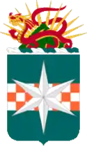 The unit's Distinctive Unit Insignia (DUI) is a silver color metal and enamel device 1+1⁄8 inches (2.9 cm) in height overall consisting of a shield representing the unit's coat of arms with a silver scroll attached around the sides and bottom of the shield inscribed, "SAVOIR C'EST POUVOIR" (Knowledge is Power in French) with Black-colored lettering.