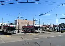 Service was extended from Balboa and 30th Avenue to Ocean Beach in 1979.[6] The express services were split in two, designated as "A" and "B", in 1982.[3] Owl service was discontinued in 1992.[8] Trolleybus infrastructure was installed on the line with completion in May 1992, but electrified service began on July 5, 1993 for limited runs after issues with the newly-enacted Americans with Disabilities Act affected the availability of rolling stock.[9] The full trolleybus conversion took place on March 12, 1994.[10]