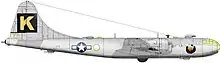 On their vertical stabilizers they wore a 12-foot (4 m) square black box unit identification mark with a large capital letter K superimposed. This was to assist with identifying squadron aircraft out of a crowded sky to form up on during the daylight missions. In late summer the 'K' was infilled with a bright orange–yellow paint for better recognition. In late summer in 1945, it was ordered that all aircraft would have their undersides painted a glossy black. The intention was to mask them from enemy searchlights.