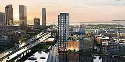 Construction on the tower began in September 2022 with expected completion in 2024.[5] Chicago based Solomon Cordwell Buenz is serving as the lead architect for the project with Chicago-based W.E. O'Neil Construction serving as the General Contractor. As part of the project, the city of Milwaukee created a $903,000 in tax incremental finance assistance for a 210-linear foot connection to the Milwaukee Riverwalk system.[6]