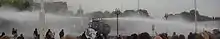 As with all recent G8 summits, the event drew large protests, part of the anti-globalization movement. The main demonstration took place 2 June 2007 in the nearby city of Rostock and was the starting event for a week of protests and blockades. Organizers spoke of up to 80,000 participants, while police put the figure at an estimated 25,000.[15] Towards the end of the 2 June protest, violent clashes occurred between protesters and the police, essentially limited to a small area at the harbor. Initially, these drew wide media overstatement, with initial reports claiming nearly 1000 people injured (433 German police officers, 30–33 of them requiring hospitalisation,[16] and 520 protesters, 20 requiring hospitalisation[17]). Later, these figures were disputed.[18] According to police estimates, 2,000 autonomists led the riots, setting fire to a total of 3 cars and setting up makeshift barricades; many peaceful protesters fled the action and ensuing police response in panic.[19] Over 1,000 protesters were detained, and nine of them were tried and condemned during the summit.[20] Hundreds were expelled.[20] According to the European Democratic Lawyers NGO: