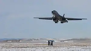 ![]() A B-1 takes off from Ellsworth Air Force Base, S.D., 21 March 2018. The bomber was manned by an all-female aircrew from the 34th Bomb Squadron. | |