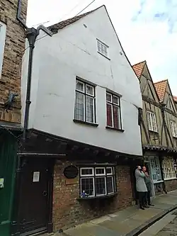35 The Shambles is an historic building in the English city of York, North Yorkshire. A Grade II* listed building, part of the structure dates to the mid-14th century, with an extension added the following century. The ground floor was rebuilt in variegated brick in Flemish bond; the two upper levels are rendered.[1]