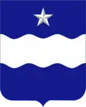 This Regiment was organized at Fort Sam Houston in 1916 and served along the Rio Grande during its first years. The shield is blue for Infantry, with a wavy fess to denote the Rio Grande and the lone star of Texas.