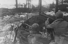 The 394th Infantry Regiment's Intelligence and Reconnaissance Platoon under the command of Lieutenant Lyle Bouck became the most decorated American unit of World War II due to the actions of the eighteen men of the platoon while fighting [1][2] in the Battle of Lanzerath Ridge during the Battle of the Bulge.[3] The platoon was recognized with Presidential Unit Citation Order No. 26 in 1981.[4]