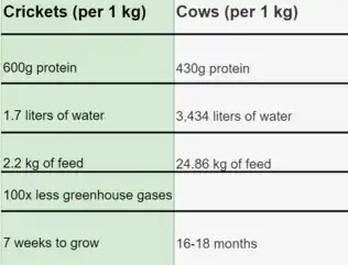 As the world's population continues to grow, experts believe that current food supplies will not be able to supply the population.[30] Thus, a sustainable food source is critical. Studies have shown that entomophagy, the consumption of insects, has the potential to sustain a growing population.[31] Insects such as crickets require less feed, less water, and provide around the same amount of protein that chickens, cows, and pigs do.[31] Crickets can be ground into a protein flour. In one study,[32] researchers provide an overview of the process of 3D printing insect flour into foods that do not resemble insects; thus, keeping the nutritional value of the insect intact.