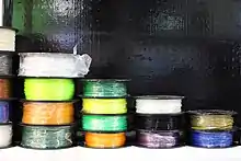 3D printing filament is the thermoplastic feedstock for fused deposition modeling 3D printers. There are many types of filament available with different properties.[1]