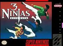 3 Ninjas Kick Back is a beat 'em up platform game for the Sega Genesis, Super Nintendo Entertainment System, and Sega CD. It was released in 1994[1] and was developed by Malibu Interactive. The Genesis version was published by Psygnosis while the SNES and Sega CD versions were published by Sony Imagesoft.