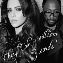 "3 Words" is a song recorded by English singer Cheryl Cole for her 2009 debut studio album of the same name. It was released in the UK and Ireland on 20 December 2009 by Fascination Records (Polydor Records) and later in 2010 by Universal Music, serving as the lead single for 3 Words in other countries. The uptempo dance-pop song was written by Cole and George Pajon. It was also written and produced by will.i.am who has guest vocals on the song. "3 Words" was cited by Cole as her favourite song from the album for being different from what people expected.