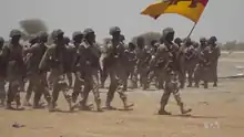 ![]() A military parade of the 3rd Division with its unit colours during an exercise in the Sambisa Forest in 2017. | |