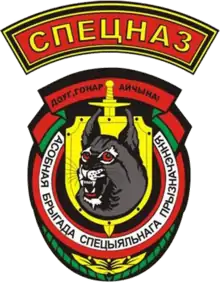 Today, it is the only unit in Belarus that has the right to wear a maroon beret. The symbol of the brigade is the lynx, a Belarusian predator.[14] Its brigade holiday is on 4 September.[15] A former officer of the brigade described the men in its ranks as "zombies", claiming that they have been brainwashed. According to him, their motto is "I serve the country and the President".[16]
