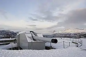 - Battery Theo with four guns mounted at Trondenes Fort near Harstad. German unit MKB 5 / MAA 511