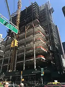 The building reached half its full height in April 2018.[18] Facade installation began in June 2018; at the time, the superstructure was 22 stories from topping out.[19] The building topped out on December 4, 2018, in a ceremony attended by lead architect Lord Norman Foster.[1] The building received a temporary Certificate of occupancy in January 2021.[20][21][22] The renovation was completed in October 2022.[22][23]