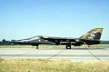 In early 1968, the Air Force decided to send a small detachment of F-111As to Southeast Asia under the "Combat Lancer" program. Six 428th TFS Harvest Reaper F-111As were allocated to the Combat Lancer under "Detachment 1"[9] under the command of Colonel Ivan H. Dethman, and they departed Nellis for Takhli Royal Thai Air Force Base on 15 March 1968. The 6 F-111s, accompanied by KC-135 tankers, departed for Andersen AFB, Guam. The over 13 hour trip was flown using the F-111's inertial navigation system and with topoff refueling from the tankers, arriving at Andersen AFB on the 16th.[10] The Detachment departed Andersen and arrived at Takhli on 17 March. The Detachment was attached to the F-105 Thunderchief-flying 355th Tactical Fighter Wing in what was officially seen as the first stage in replacement of the Wing's F-105s with the F-111A.[11] F-111 combat operations began on 25 March using the aircraft's unique terrain following radar (TFR) capability to conduct surprise night deep interdiction strikes.[12] By the end of the deployment, 55 night low-level missions had been flown against targets in North Vietnam, but three aircraft had been lost. Aircraft 66022, call sign Omaha 77, had been lost on 28 March with the loss of the crew, Colonel Hank McCann and Captain Dennis Graham. On 30 March, the crew of Major Sandy Marquardt and Captain Joe Hodges in aircraft 66017, Hotrod 73, successfully ejected and was recovered uninjured in Thailand.[13] Replacement aircraft had left Nellis, but a third loss halted F-111A combat operations. On 22 April, Tailbone 78, aircraft 66024, crewed by Lieutenant Commander Spade Cooley and by Lieutenant Colonel Ed Palmgren, was lost.[14] After the 3rd loss, the Detachment remained poised for combat, but they saw no combat action before their return to the U.S. on 22 November.[7] The Detachment and remaining aircraft returned to Nellis and development of the F-111 continued, with the 474th finally reaching operational status in 1971.