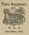 The 43rd Regiment Massachusetts Volunteer Infantry was a regiment of infantry that served in the Union Army during the American Civil War. The unit was first formed in September 1862 in response to President Abraham Lincoln's call for 300,000 men to serve for nine months.[1] The nucleus of the regiment was the Second Battalion Massachusetts Volunteer Militia, a unit dating to 1798 known as the Boston Light Infantry and nicknamed the "Tigers." The 43rd Massachusetts therefore became known as the "Tiger Regiment."[2]