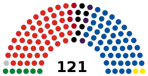 The 48th Parliament consists of 121 representatives. This represents an overhang of one seat, with the Māori Party having won one more electorates than its share of the vote would otherwise have given it. In total, sixty-nine of the MPs were chosen by geographical electorates, including seven Māori electorates. The remainder were elected by means of party-list proportional representation under the MMP electoral system.