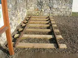 The standard gauge of 4 ft 8+1⁄2 in (1,435 mm), also known as the Stephenson gauge after George Stephenson, was adopted in Great Britain after 1846 after the passing of the Regulating the Gauge of Railways Act 1846.[6] A few remnants of old lines remain, but are non functional with the exception of one example of the St Michael's Mount Tramway at St Michael's Mount in Cornwall. It is a partial underground railway that used to bring luggage up to the castle. It occasionally operates, but only for demonstration reasons and is not open to the general public, although a small stretch is visible at the harbour. It is therefore believed to be Britain's last functionally operational Scotch gauge railway.[7][8]