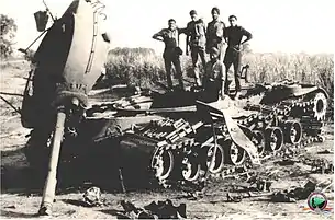 In the 1965 war, Hodson's Horse was equipped with the Centurion tanks.[33] It was part of the divisional reserve of the 1st Armoured Division, tasked for the massive attack at the Phillora sector against the Pakistani 6th Armoured Division.[34] From Rurki Kalan, two regiments (4 Horse and 17 Horse) were to open out and encircle Phillora by a pincer movement from both flanks, while 16th Light Cavalry was to provide flank protection from the right.[35] 43rd Lorried Brigade was tasked to capture Phillora. This armada of tanks destroyed the maximum number of enemy tanks (most of which were newly acquired and technologically superior Patton tanks) and recoilless guns.[36][37]