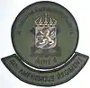 The coat of arms of the 4th Marine Regiment was previously used by Älvsborg Coastal Artillery Regiment (KA 4) from 1942 to 1994 and by the Gothenburg Marine Brigade with Älvsborg Coastal Artillery Regiment (Göteborgs marinbrigad med Älvsborgs kustartilleriregemente, GMB) from 1994 to 2000.[7] Blazon: "Azure, the regimental badge, three waves bendy-sinister argent, charged with a double-tailed crowned lion rampant or, armed and langued gules, in dexter forepaw a sword or and in sinister a shield azure charged with three open crowns or placed two and one. The shield surmounted two gunbarrels of older pattern in saltire above a flaming grenade and waves".[7]