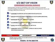 The 4th Brigade, 2nd Infantry Division ("Raiders") is an inactive Stryker Brigade Combat Team (SBCT) of the United States Army. The brigade was activated at Fort Lewis, Washington on 1 June 2006 by reflagging the 2nd Stryker Cavalry Regiment. The 4th Stryker Brigade had the distinction of being the last U.S. Army combat brigade to serve in support of Operation Iraqi Freedom.[1][2] The brigade deployed three times in support of the War on Terror, to Iraq from 2007–2008 and from 2009–2010, and to Afghanistan from 2012–2013 before inactivating in March 2014.