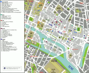 The arrondissement, also known as Hôtel-de-Ville, is situated on the right bank of the River Seine. It contains the Renaissance-era Paris City Hall, rebuilt between 1874 and 1882.[2] It also contains the Renaissance square of Place des Vosges, the overtly modern Pompidou Centre, and the lively southern part of the medieval district of Le Marais, which today is known for being the gay district of Paris. (The quieter northern part of Le Marais is within the 3rd arrondissement). The eastern part of the Île de la Cité (including Notre-Dame de Paris) and all of the Île Saint-Louis are also included within the 4th arrondissement.