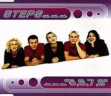 "5,6,7,8" is a song by British group Steps from their debut studio album, Step One (1998). It is a techno-pop and country pop song written by Barry Upton and Steve Crosby, and produced by Karl Twigg, Mark Topham and Pete Waterman. It was released as their debut single in November 1997 following their being put together after each group member responded to a magazine advert looking for people to audition to be in a pop band.