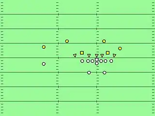 The second significant version of the 5–2 defense is the 5–2 defense that Bud Wilkinson developed while he was a head coach at Oklahoma. The latter defense, also called the 5–2 Oklahoma, is supposed to have arisen from Bud's exposure to Earle Neale's 5–2 defense in a College All-Star game after the Philadelphia Eagles' first championship.[9] Bud took the defense back with him to Oklahoma and adapted lineman and linebacker positions to better handle the college offenses of the time. In particular, the split between the middle guard, or nose tackle, and the other defensive tackles grew wider in the Oklahoma, and the linebackers were positioned a couple yards behind the line, and facing the opponent's offensive guards.