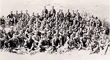 On 26 August 1922, the Turkish army launched a major and decisive offensive. The regiment was ordered forward to cover 4th Infantry Division's right flank, and plug the gap between it and the neighbouring 1st Infantry Division, at the Kalecik subsector. On the same evening, the regiment's 3rd company recaptured the strongpoint of Katsimpali, and the 1st and 2nd Battalions established advance guards at the Kalecik subsector; the 3rd Battalion arrived at the area at dawn of the 14th, after marching through the night.[17] The regiment spent the entire day repulsing Turkish attacks supported by heavy artillery fire. The regiment launched counterattacks, but the 1st and 3rd Battalions suffered heavy losses, forcing them to withdraw, covered by 2nd Battalion. With great difficulty, and after suffering over 600 killed and injured, the regiment managed to occupy new positions on the Beltepe heights; at 18:30, it received the order to withdraw.[18] The withdrawal was carried out during the night: passing south of the Köprülü heights, held by the 23rd Infantry Regiment, the Evzones arrived at the train line some 3 km west of the Balmahmut rail station, where they stopped. On the next day, the regiment continued its retreat towards the Dumlupınar heights, and established new defensive positions at Hasan Dede Tepe in the evening.[19] On the 16th, it repulsed an attack by a Turkish regimental-sized force. During the next day, the V and XIII cavalry demi-companies and the regiment's own mounted detachment arrived, having passed through the Turkish lines. Due to the advance of the Turks on both of its flanks, and in order to avoid being cut off, Plastiras again decided to withdraw, with the 3rd Battalion covering the rear. On the 18th, marching through mountainous and wooded terrain, the retreating Evzones were attacked by another regimental-sized Turkish force, but repelled it, and reached the foothills of Elma Dağ around midnight.[19]