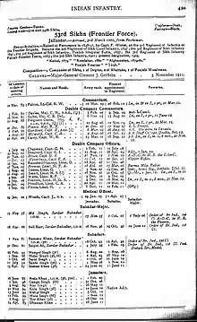 - 1922: 3rd Battalion (Sikhs) 12th Frontier Force Regiment