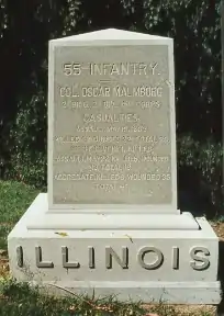 Monument to the 55th Illinois Infantry and Oscar Malmborg at Vicksburg.