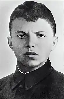 The encircled force was authorized to break out on the night of December 15/16. The 74th Brigade formed part of the first echelon while the 91st was left to help hold the perimeter before withdrawing through the corridor to the positions of 41st Army. In a German after-action report both brigades were said to have been destroyed.[9] However, in a report at the time of the breakout the 91st Brigade recorded an infantry strength of about 2,800 men.[10] During February 1943 the 6th Rifle Corps returned to the 22nd Army. On February 27 the 2nd Battalion of the 91st Brigade was tasked with attacking a German stronghold near the village of Pleten. Two machine gun bunkers were knocked out, but a third continued to hold up the assault. Krasnoarmeets Aleksandr Matveyevich Matrosov, a 19-year-old volunteer, crept forward to the flank of the bunker and threw two grenades through its embrasure, which appeared to silence it. But when Matrosov's comrades resumed their attack the German gun began firing again. Matrosov then blocked the embrasure with his body and was killed, allowing the attack to continue. While similar feats had occurred previously and would continue, Matrosov's sacrifice was written up by an attached journalist and soon became news across the USSR. He was posthumously made a Hero of the Soviet Union on June 19 and the 254th Guards Rifle Regiment, which was mostly made up of men of the 91st Brigade, was soon given his name as an honorific.[11]