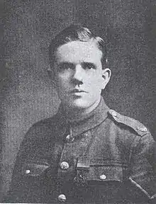 When the Volunteer Force was subsumed into the new Territorial Force (TF) under the Haldane Reforms of 1908, the 1st VB became the 5th Battalion, Manchester Regiment, with its HQ at Bank Chambers, Wigan.[2][6][8][9][7][17][18] The Manchester Brigade became part of the East Lancashire Division of the TF.[19][20]