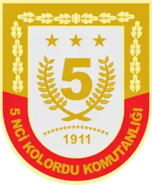 The 5th Corps (Turkish: 5. Kolordu) is a field corps of the Turkish Army under 1st Army. It is headquartered at Çorlu in Tekirdağ Province under command of Tevfik Algan. It was formed in 1921 during the Turkish War of Independence.[1][2]