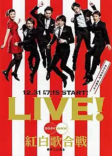 The 64th NHK Red & White Year-End Song Festival (第64回NHK紅白歌合戦) was aired on December 31, 2013. This edition's theme was "歌がここにある" ("Uta ga Koko ni Aru", "The Song Is Here") and the captains were Arashi (Shirogumi) and Haruka Ayase (Akagumi). This was the 25th edition on Heisei Era. The most notable highlights from this edition were the Amachan special segment, Yuko Oshima's surprise graduation announcement during AKB48 performance, and final performance from Saburo Kitajima who announced an honorable retirement from Kouhaku after 50 performances.