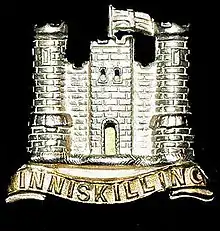 Enniskillen Castle and the regiments raised at Enniskillen during the Williamite Wars are inextricably linked. The Inniskilling Dragoons were quartered there many times since their formation. The badge of the regiment also features a depiction of the castle.[29]
