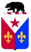 - Symbolism: The design is adapted from the crest of the Coast Defenses of San Francisco where the old regiment and the majority of the companies of same were stationed since 1901 and where the new regiment will be organized and assigned.[16] The motto "CERTO DIRIGO ICTU" (I Aim With a Sure Blow) is indicative of the character of the bear.[15]
