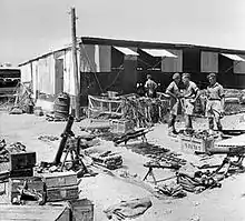 In late 1945, the 6th Airborne Division deployed to Palestine as the Jewish insurgency against British rule there intensified. Its duties included enforcement of curfews and searches of cities, towns, and rural settlements for arms and guerrillas. In late 1947, as the British withdrawal from Palestine began, it was involved in the 1947-48 Civil War in Mandatory Palestine between the Jewish and Arab communities, and engaged both Jewish and Arab forces. The division's units gradually departed the country, with the last of the division's troops leaving Haifa on 18 May, only a few days after Israeli independence. Between October 1945 and April 1948, the division's losses to enemy action were 58 killed and 236 wounded. Another 99 soldiers died from causes other than enemy action.[38] During searches of Jewish and Arab areas for arms, the division's soldiers had uncovered 99 mortars, 34 machine guns, 174 sub machine guns, 375 rifles, 391 pistols, 97 land mines, 2,582 hand grenades and 302,530 rounds of ammunition.[39]