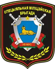 The 6th Separate Special-Police Brigade of the Internal Troops of Belarus (Belarusian: 6-я асобная спецыяльная міліцэйская брыгада ўнутраных войскаў Міністэрства ўнутраных спраў Рэспублікі Беларусь; Russian: 6-я отдельная специальная милицейская бригада внутренних войск Министерства внутренних дел Республики Беларусь), officially known as Military Unit 5525 is a special police formation of the Internal Troops of Belarus under Ministry of Internal Affairs.[2] Its forces are deployed in four cities of the Gomel Oblast: Gomel, Mazyr, Rechytsa and Svietlahorsk. By 2015, the unit carried out almost the entire range of tasks assigned to the Internal Troops, it was staffed by 2/3 with contract servicemen, warrant officers and officers.[3][4]