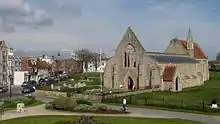 In 1940, 27 AA Bde transferred to 5th AA Division and moved to Portsmouth to assist in the defence of the Royal Naval Dockyards there.[11] Portsmouth was a major target for the German Luftwaffe, and the regiment was present during the daytime bombing raids of the Battle of Britain, when searchlight detachments had a subsidiary role in plotting raids and in close defence with light machine-guns.[12] Searchlights were vital for directing AA guns and night fighters during the night attacks of The Blitz (1940–41), when Portsmouth city centre was devastated by a series of raids.[13][14][15] The city was attacked again during the Baedeker Blitz of 1942.