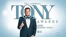 The 73rd Annual Tony Awards were held on June 9, 2019, to recognize achievement in Broadway productions during the 2018–19 season. The ceremony was held at Radio City Music Hall in New York City and was broadcast live by CBS.[2] James Corden served as host.[3]