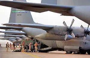 The squadron was redesignated the 778th Expeditionary Airlift Squadron, converted to provisional status, and assigned to Air Combat Command to activate or inactivate as needed.[17] It was activated as a Lockheed C-130 Hercules airlift squadron as part of the Global War on Terrorism. By January 2003, the squadron was flying missions in Afghanistan with crews deployed from Little Rock Air Force Base.[18]