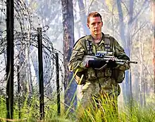 The battalion contributed a mechanised platoon to two rotations of the ANZAC Battle Group deployment to Timor in 2007 and 2008 as part of Operation Astute.[28] In 2008–09, elements of the battalion deployed to Afghanistan as part of Operation Slipper, forming the basis for the 1st Mentoring and Reconstruction Task Force (MRTF-1).[29] One member of the battalion was killed in action during an engagement near Kakarak on 16 March 2009.[30][31][32]