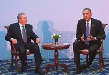 Cuba, along with the United States, attended the seventh Summit of the Americas in Panama.[3] Given the pledge by ALBA member states to boycott the summit if Cuba was not invited, political controversy brewed as it transpired that Panama's government issued an invitation to the Summit. State Department spokesman Jen Psaki implicitly cautioned that Cuba's attendance of the summit would make a mockery of the spirit of the Inter-American Democratic Charter.[4] For their part, Cuban-American senators Bob Menendez and Marco Rubio urged Panama to withdraw the invitation for Cuba to attend the summit, insisting that the move could be a slap in the face to the principles of the Inter-American Democratic Charter.[5][6] However, another State Department official hinted that the US would tacitly welcome Cuba's participation in the 2015 Summit of the Americas.[7] Following the announcement on December 17, 2014 of a shift towards normalization of relations with Cuba, the US Government dropped its objections to Cuba's presence while calling for the participation of Cuban civil society groups.[8] Before the summit, the daughter of Oswaldo Payá, Rosa Maria Payá, was detained upon arriving at an airport in Panama; a second activist from Argentina also said they were detained.[9]